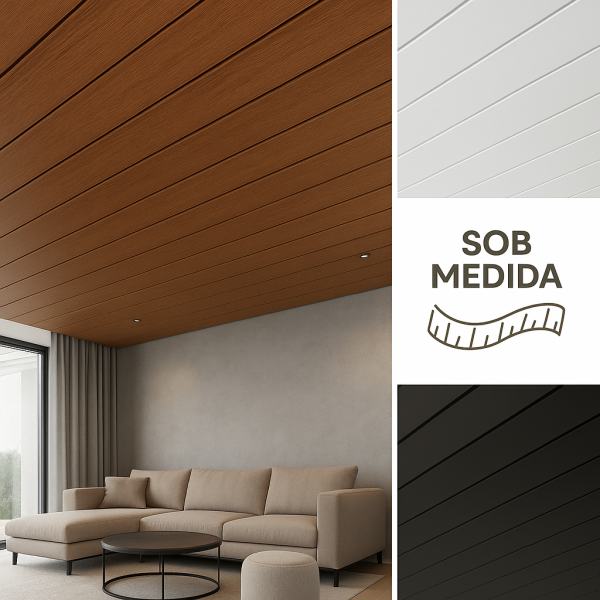 E você, já imaginou sua obra com essa precisão e personalização? Qual dos acabamentos – Branco, Preto ou Amadeirado – para o forro, e qual cor para a chapa externa, mais combina com o seu projeto sob medida?